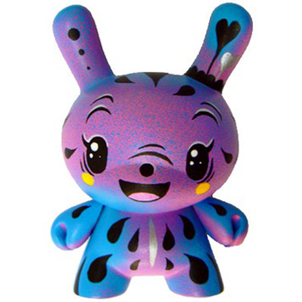 The toy is based on a rabbit figure with distinctive tubular ears. The origin of the name Dunny came from a combination of street slang and one of the early "Devil Bunny" prototypes. The Dunny is sold in four sizes - 3", 5", 8" and 20". The toy has three points of articulation; a 360 degree rotational head and two arms. An artist card or sticker is also included with the 3" Dunny from a series. Most 3" Dunnys and some 8" Dunnys are normally sold as "blind assortment"; the figure is packaged inside a sealed foil wrapper, such that the buyer is not able to see which figure and accessories they are buying. Sealing the figure prevents people from opening and peeking in the boxes and buying only the figures they want. Most Dunnys are packaged inside a clear plastic bag in addition to the foil wrapper. In the second-hand market, this assures the buyer that the article was never on display and is in a "new" condition. With the success of vinyl toys as a medium for expression, many fans and artists have put their own design onto blank Dunnys. Raised in Dronfield in the United Kingdom, Squink! grew up on a diet of popcorn, candy, and Jayce and the wheeled warriors. Qualified as a graphic designer but also a keen painter from a very early age, he became a toy collector with the launch Of the Toy2R Qee, which eventually lead to customising everything he could get his hands on! A head filled with characters in need of being set free finally had an outlet. Heavily influenced by japanese culture and 80’s cartoons, he claims to put a little bit of his soul into each character he creates, giving them all a unique personality, fueled by coffee, good smelly cheese and shoegaze. Gathering inspiration from the toys and natural forms he surrounds himself with. Squink! has more recently branched out into canvas paintings, and also limited edition screen printed t-shirts.