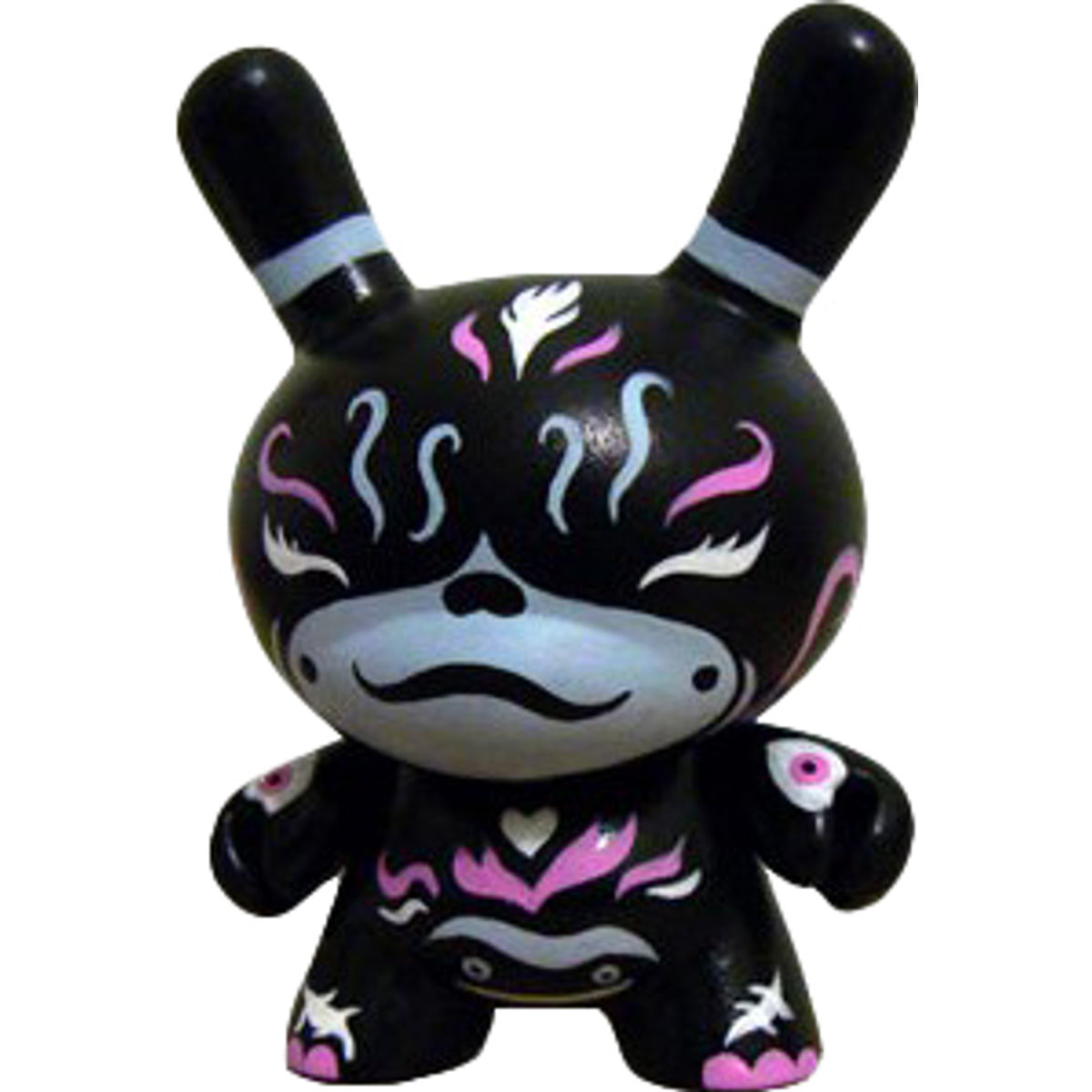 The toy is based on a rabbit figure with distinctive tubular ears. The origin of the name Dunny came from a combination of street slang and one of the early "Devil Bunny" prototypes. The Dunny is sold in four sizes - 3", 5", 8" and 20". The toy has three points of articulation; a 360 degree rotational head and two arms. An artist card or sticker is also included with the 3" Dunny from a series. Most 3" Dunnys and some 8" Dunnys are normally sold as "blind assortment"; the figure is packaged inside a sealed foil wrapper, such that the buyer is not able to see which figure and accessories they are buying. Sealing the figure prevents people from opening and peeking in the boxes and buying only the figures they want. Most Dunnys are packaged inside a clear plastic bag in addition to the foil wrapper. In the second-hand market, this assures the buyer that the article was never on display and is in a "new" condition. With the success of vinyl toys as a medium for expression, many fans and artists have put their own design onto blank Dunnys. Raised in Dronfield in the United Kingdom, Squink! grew up on a diet of popcorn, candy, and Jayce and the wheeled warriors. Qualified as a graphic designer but also a keen painter from a very early age, he became a toy collector with the launch Of the Toy2R Qee, which eventually lead to customising everything he could get his hands on! A head filled with characters in need of being set free finally had an outlet. Heavily influenced by japanese culture and 80’s cartoons, he claims to put a little bit of his soul into each character he creates, giving them all a unique personality, fueled by coffee, good smelly cheese and shoegaze. Gathering inspiration from the toys and natural forms he surrounds himself with. Squink! has more recently branched out into canvas paintings, and also limited edition screen printed t-shirts.
