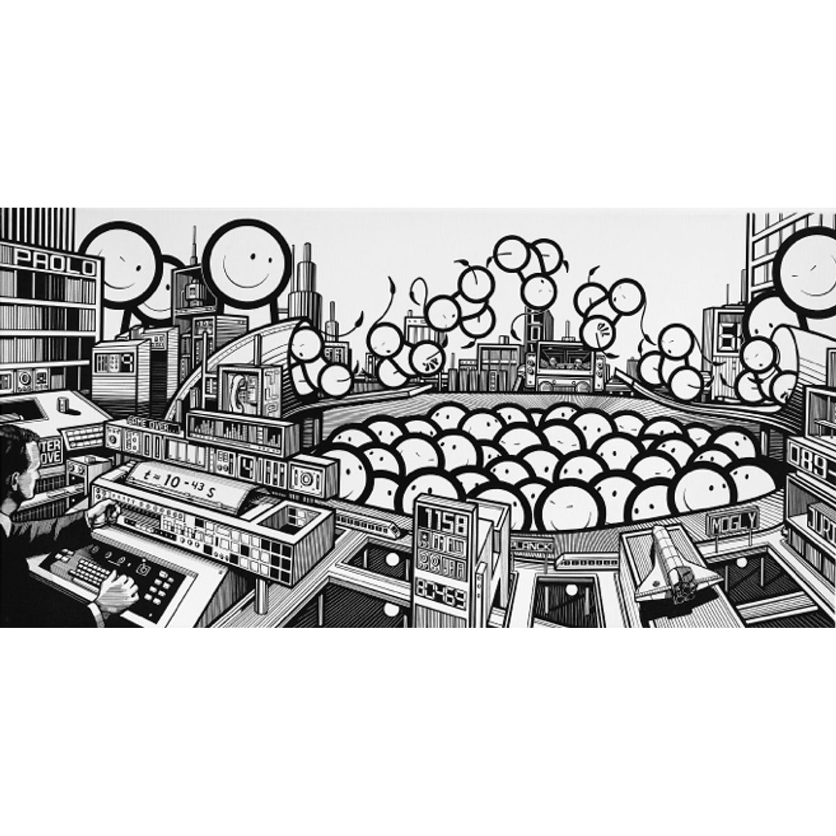 Chaz and Bob founded The London Police in 1998. Born in Chelmsford, Essex in 1977, they have now been based in Amsterdam for over a decade. From 2000, the duo collaborated with a third member, Garrett Chow, however when the group disbanded mid-decade, Chaz continued The London Police alone. Bob’s recent return to the collective signaled a new beginning in the history of The London Police and 2009 has proven to be their finest year to date. The London Police have developed a clean, distinct, and highly recognizable style over the years. The sensory thrill of their work is influenced in part by technology and science fiction, the magic of the cinema, and the empowering nature of the urban environment. Their interest in artistic identity and branding and ability to reappropriate and remix likens their style to that of Takeshi Murakami, while the iconic function of the LADS, on the other hand, is not dissimilar to Walt Disney’s Mickey Mouse. Use of liquid ink as a material to create art, typically by applying it to a surface like paper with a pen or brush, allowing artists to produce drawings, paintings, or calligraphy by utilizing its fluidity and color properties to form images or text; essentially, it's a versatile tool for creating artwork through the application of colored liquid