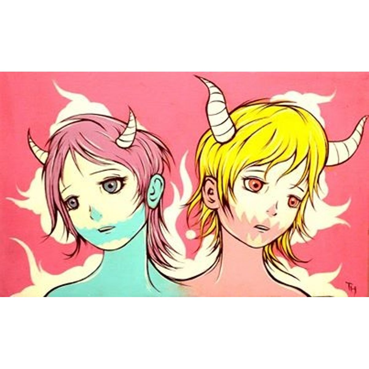 Mixed media tends to refer to a work of visual art that combines various traditionally distinct visual art media. For example, a work on canvas that combines paint, ink, and collage could properly be called a "mixed media" work. When creating a painted or photographed work using mixed media it is important to choose the layers carefully and allow enough drying time between the layers to ensure the final work will have integrity. If many different media are used it is equally important to choose a sturdy foundation upon which the different layers are imposed. Many interesting effects can be achieved by using mixed media. Often, found objects are used in conjunction with traditional artist media, such as paints and graphite, to express a meaning in the everyday life. In this manner, many different elements of art become more flexible than with traditional artist media. Thomas Han was born in 1979 in Taiwan, and he spent his formative years in San Francisco. He now resides in Los Angeles where he finds himself an oddball embraced by the evolving art scene. Han is known for his colorful, character-driven silk screens and paintings. He takes all the destruction and hedonism in today's world and channels it into his art. These highly original works are the culmination of a process he calls "Tradigital." Han believes his work can comfort people from the growing vices facing society. He is a walking, talking contradiction, yet he is also a hopeless believer. On the surface, his work appears cute, but seething just underneath are serious subjects like pain and addiction. Thomas' message of want, desire, addiction, and the curious world of exaggerated pop and color are all wrapped up into well-perfected imperfections of candy-coated pieces