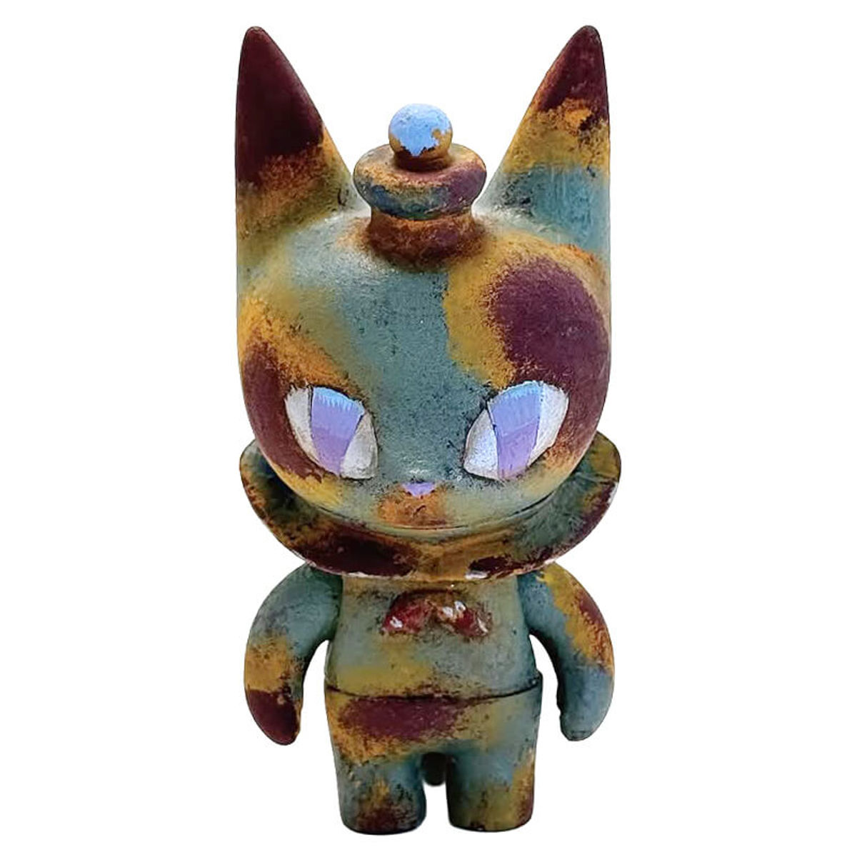 Touma is a Japanese artist and designer known for his distinctive urban and edgy art toys. He gained prominence in the designer toy scene with his signature sharp, angular aesthetics and stylized, anthropomorphic characters that often have a rebellious or mischievous look. Many of his figures have oversized, curved claws instead of hands, giving them a dynamic and aggressive stance. His designs often have a street-art aesthetic, blending elements of graffiti, hip-hop, and Japanese pop culture. Touma frequently designs animal-human hybrids, masked warriors, and robotic creatures with a sleek, futuristic look. Touma’s art toys are popular among urban vinyl collectors, kaiju fans, and designer toy enthusiasts who appreciate bold, dynamic, and highly stylized figures.