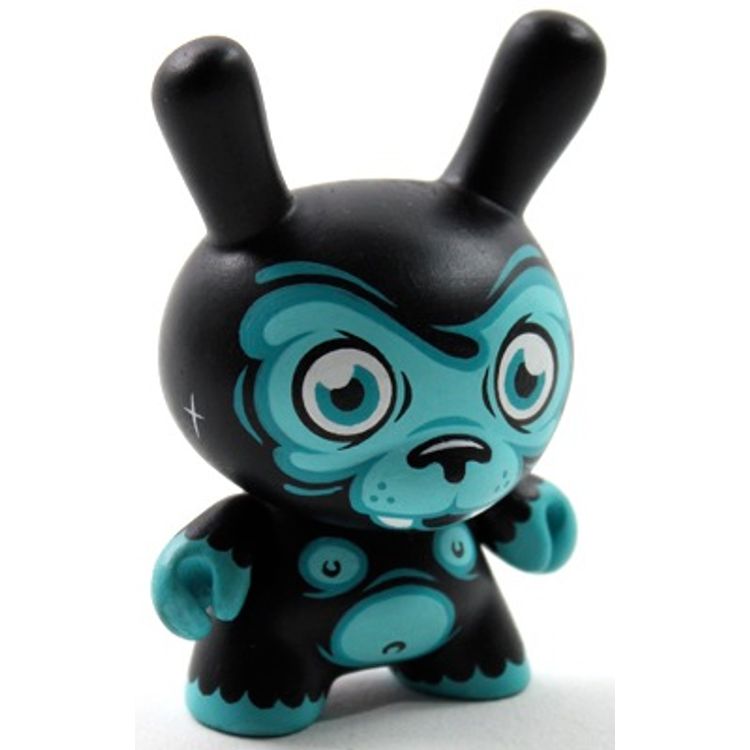 The toy is based on a rabbit figure with distinctive tubular ears. The origin of the name Dunny came from a combination of street slang and one of the early "Devil Bunny" prototypes. The Dunny is sold in four sizes - 3", 5", 8" and 20". The toy has three points of articulation; a 360 degree rotational head and two arms. An artist card or sticker is also included with the 3" Dunny from a series. Most 3" Dunnys and some 8" Dunnys are normally sold as "blind assortment"; the figure is packaged inside a sealed foil wrapper, such that the buyer is not able to see which figure and accessories they are buying. Sealing the figure prevents people from opening and peeking in the boxes and buying only the figures they want. Most Dunnys are packaged inside a clear plastic bag in addition to the foil wrapper. In the second-hand market, this assures the buyer that the article was never on display and is in a "new" condition. With the success of vinyl toys as a medium for expression, many fans and artists have put their own design onto blank Dunnys. Jeune artiste parisien, Fakir s'est fait connaître des amateurs de designer toys grâce à ses customs de figurines parfaitement exécutés. Il est également à l'origine du Lapin Qbiq qu'il a lui-même autoproduit. Illustrateur, character-designer, peintre et toymaker, il capte dans ses travaux toute l'énergie de ses références visuelles pour nous offrir un florilège inspiré de personnages exaltés. Avec un traité graphique très pur et des influences issues du cartoon, du graffiti, du manga ou du tatouage, l'univers de Fakir est d'une incroyable fraicheur et d'une maîtrise surprenante.